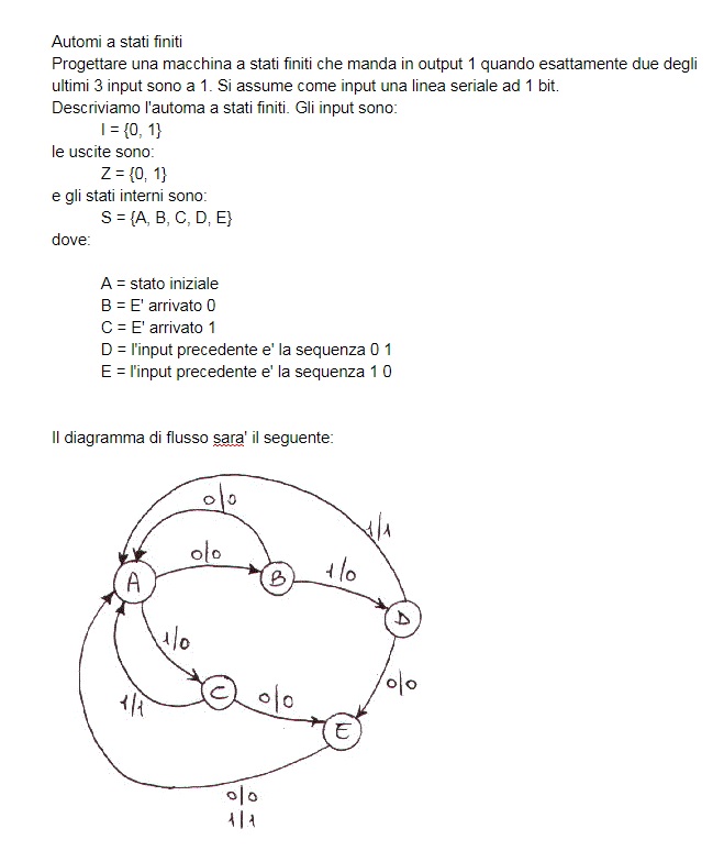 Si parte da A, entra 0 si resta in A, entra 1 si va in B, in C entra 0 e si riparte da A, se invece entra 1 il sistema è in equilibrio.