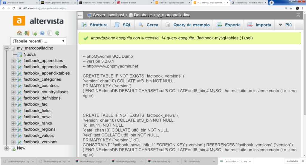Dopo aver caricato tutti i dati dei due script possibili sei pronto a seguire il prossimo articolo sull’sql