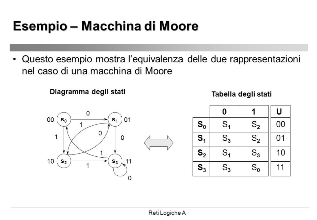 Si parte da A, entra 0 si resta in A, entra 1 si va in B, in C entra 0 e si riparte da A, se invece entra 1 il sistema è in equilibrio.