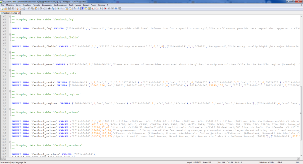 Questa mini guida ti aiuta ad importare dalla rete il db factbook della CIA .
